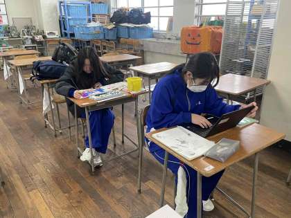 文化祭の作品発表や、地域の作品展、絵画・写真コンクールなどに参加しています。