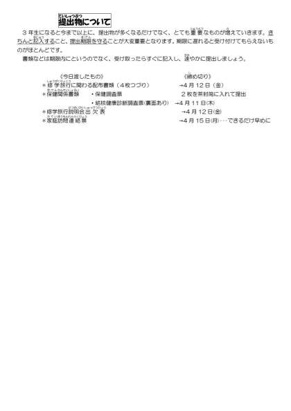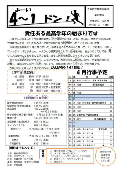 読みにくいときはココをクリック ⇒3年学年だより4月