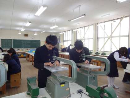 授業風景の第3幕は技術の実習。校長先生も実習に飛び入り参加。うまくいくのかな?