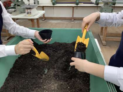 3年生技術科の授業で「枝豆の栽培」に取り組みます。発芽ポットに野菜の土を入れ、枝豆の種を植え付けました。5月には畑に定植し収穫は7月中頃の予定です。随時写真を撮って、ホームページに載せる予定です。