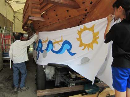 長い間かかって菱垣廻船を修復してくださっているみなさんと1年ぶりの再会です。