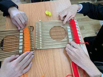 各家庭への「おみやげ」としてアクリル毛糸を使った「エコたわし」を作っています