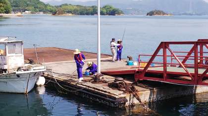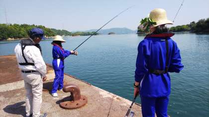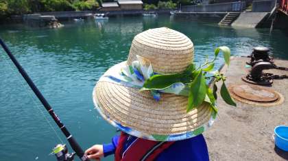 おそろいの麦わら帽子で釣りを楽しむ4人娘。釣果はいかに?