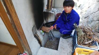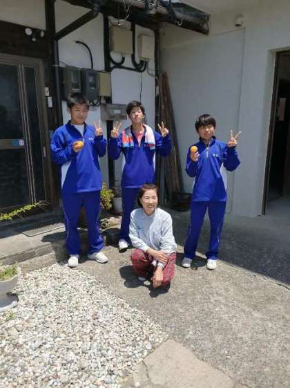こちらは男子班、まるでブドウみたいな美味しいでこぽんをたくさん頂きました。夜は五右衛門風呂に星空観察、朝は畑を猪から守る柵を作りました。今から海へカヤックに行きます。楽しみです。