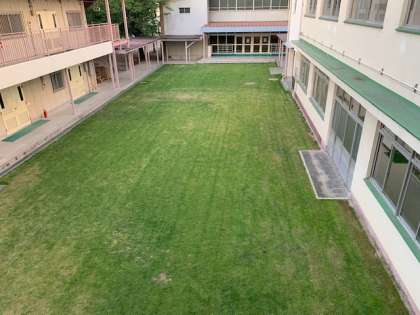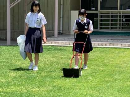 テスト終了後、部活動の代表の皆さんが芝生の手入れをしました。きれいに芝を刈ってくれました。ご苦労様でした。
