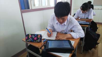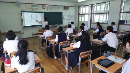 同じく2組の授業の様子です。アプリの企業の方から説明を聞き、実際に活用してみました。今後の授業や自主学習に導入し、築港中学校の学力を上げていきましょう!