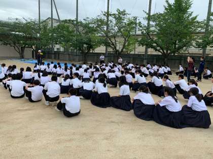 金曜日の6限目、全校で避難訓練を実施しました。火災ベルが鳴ってから全員が避難完了するまで3分33秒!素晴らしく迅速な行動でした。