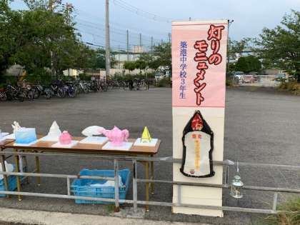 3年生が美術の時間に造った作品が、毎年夏至(げし)の日に行われる「築港キャンドルナイト」で展示されました。準備に集まってくれた美術部の皆さん、また見に来ていただいた保護者の皆さん、生徒の皆さん。最後に片づけを手伝ってくれた生徒の皆さんありがとうございました。