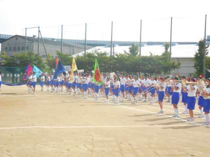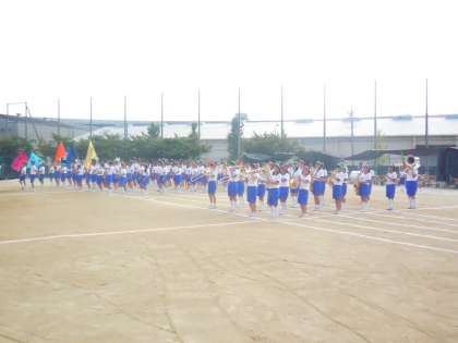 笛の合図で、一斉に前へ進みます。迫力のある行進です。