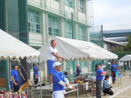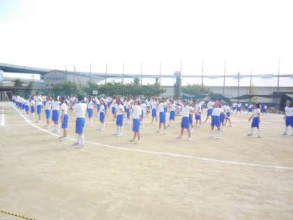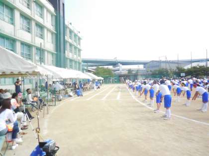 生徒代表の号令に合わせて、グランドに一斉に広がります。