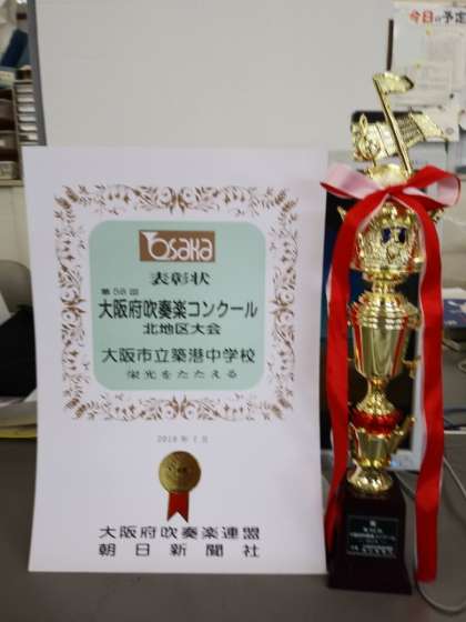 昨日、大阪府吹奏楽コンクール北地区大会において、築港中学校吹奏楽部が、見事金賞を獲得しました。おめでとうございます。