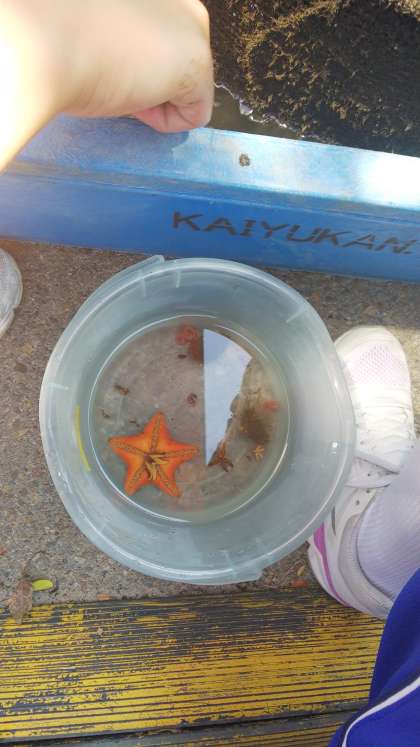春の岸壁調査よりも生物の数がとても少なかったです。やはり海水温度が高いことが影響しているそうです。