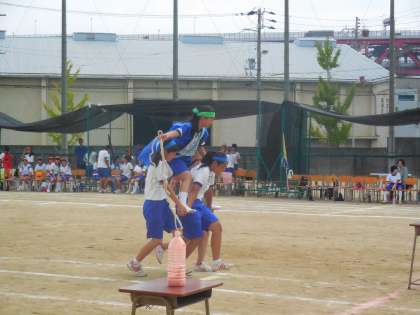 この種目も今年初めてで、縦割り(各学年同じクラス)有志の競技です。