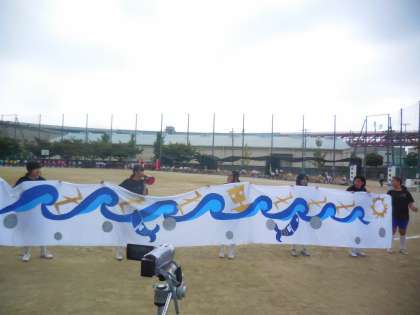 これは、11月3日天保山まつりにおいて曳航される菱垣廻船の袴を美術部が