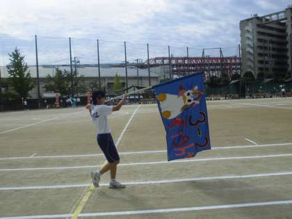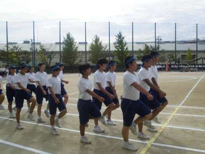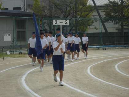 次に3年2組の入場行進です。「1、2、1,2!」という活気ある掛け声が響き渡りました。