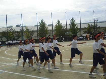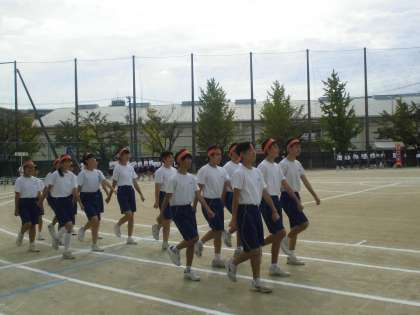 まずは3年1組の入場行進です。泣いても笑ってもこれが築港中学校最後の入場行進。