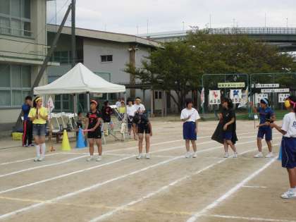 部活動対抗リレー女子の部です。どの部活にも負けじと気合十分に走っていました。