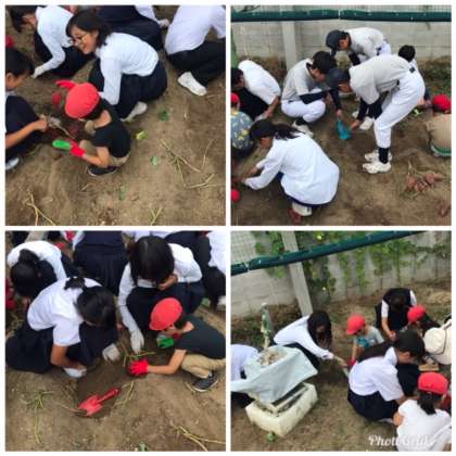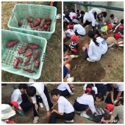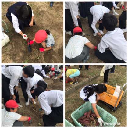 今日は中間テスト終了後に中学校の畑で、サツマイモの収穫をしました。
