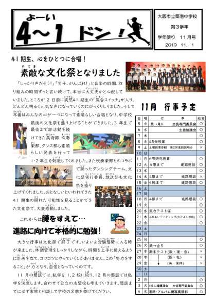 読みにくいときはココをクリック⇒3年学年だより(よーいドン)11月号