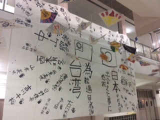 同時に2年1組の中正国中学校との交流で書いた書道も展示しました。
