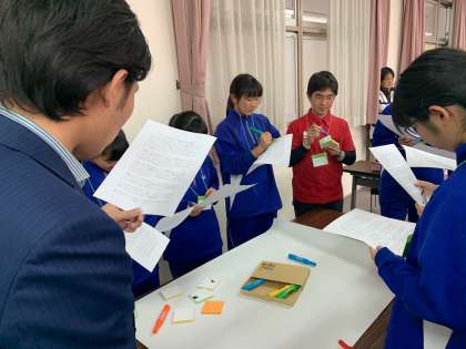 防災についても学習しました。中学生の視点から、有事の際の支援対策について話し合いました。