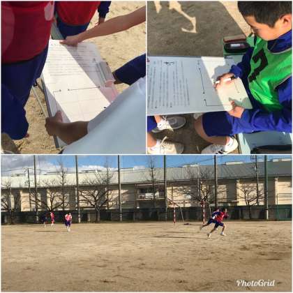 サッカー部がないので、経験者が少ないのですが『まなボード』というボードを利用してチームで作戦をたてて取り組んでいます。