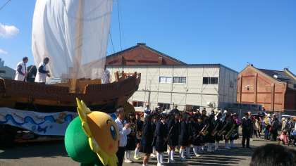 (1)11時から赤レンガ倉庫前「オープニングセレモニー」で桧垣廻船前で