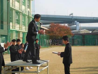 11月17日月曜日、朝の全校集会で夏休みにの課題で帝塚山学院高等学校アートグランプリに応募し見事、佳作に入賞しました。「阿修羅降臨」という題で奈良興福寺の阿修羅像を緻密に描いた力作でした。