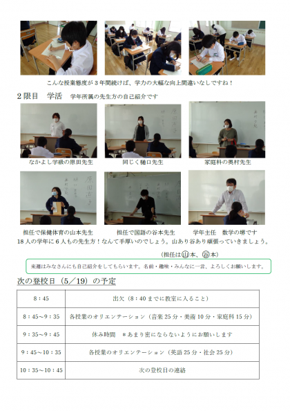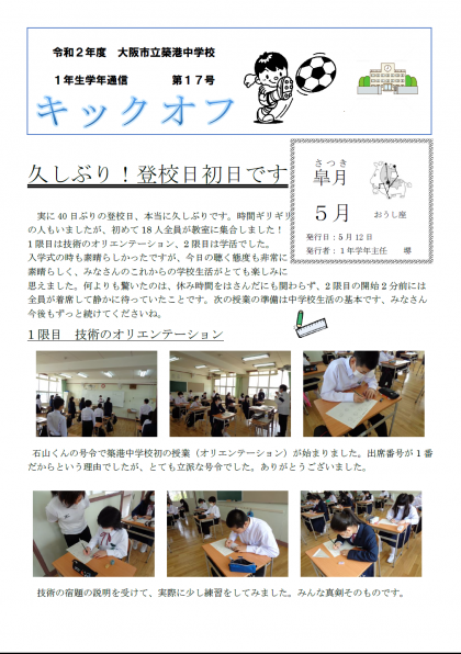1年生 学年通信 17号
