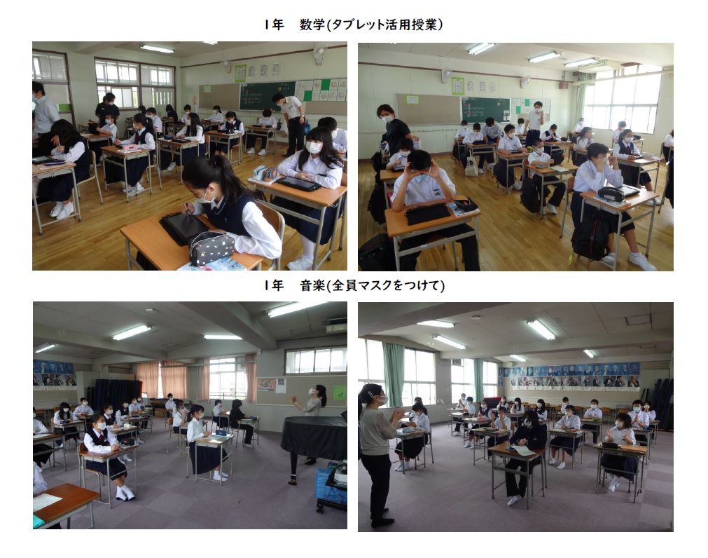 音楽は全員マスク着用でおこなわれました。様々な制約のある中、先生も創意工夫しての授業です。