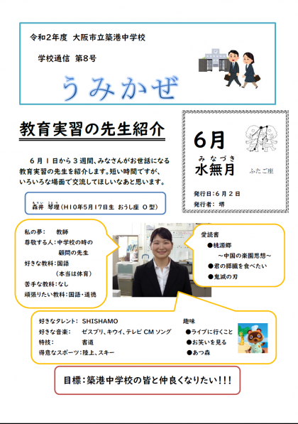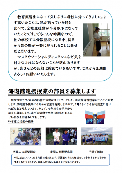 教育実習の先生の紹介です。みなさんたくさんお話しましょうね。
