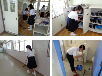 1年生は初めての清掃活動をしました。自分たちが使った場所を自分たちで清掃する、そんな当たり前の活動がやっとできるようになってきました。