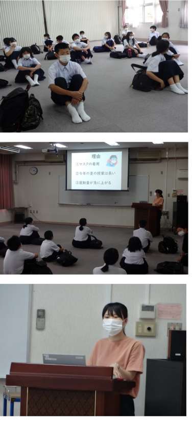 1年生の5時間目は熱中症予防講座。講師は保健室の先生。