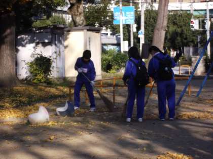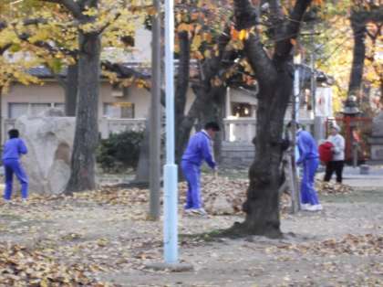 落ち葉が多く、前日の校外清掃で取りきれなかった築港南公園の落ち葉を、有志の2年生が、3日早朝に清掃してくれました。