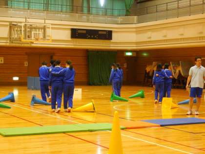 2人1組になって、1人がアイマスクをし、もう一人が介助体験をしました。