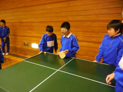 通常の卓球と違い、サーブなどを打つのではなく、ネットの下を転がしてラリーを行います。音だけでピンポン玉の位置を把握し、ラケットで打ち返すのはとても難しかったです。