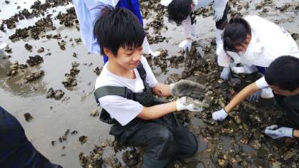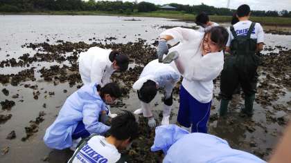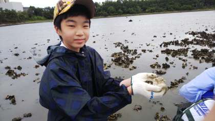 最後にカニの捕獲調査をしました。調査というより、純粋にカニと戯れています。