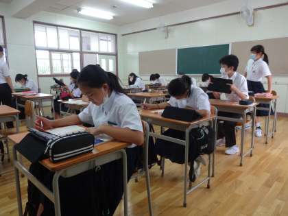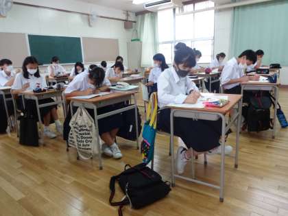 放課後学習会2日目。テスト前で部活動もなく、多くの人たちが放課後学習会に参加してくれました。学年も教科も思い思いに取り組んでました。