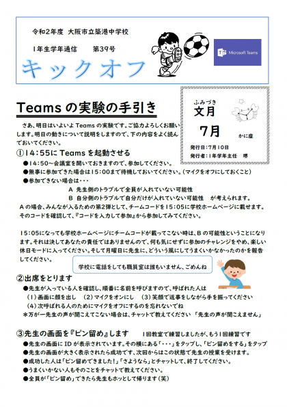 ここをクリック⇒1年生 学年通信 39号