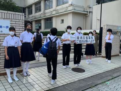 生徒会では7月28日から7月31日まで毎朝「豪雨災害募金」を行っています