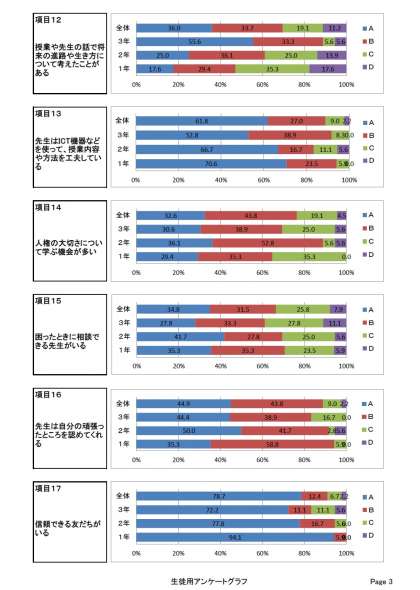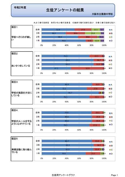 築港中学校をより良くするための資料とするために、学校評価アンケートを実施しています。アンケートは生徒用、保護者用の2種類あります。