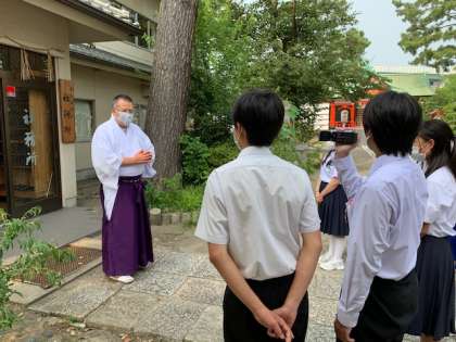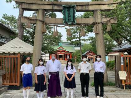 今日は「港住吉神社」に行きました。宮司さんのわかりやすい丁寧な説明に、毎日目にする港住吉神社が身近に感じられました。暑い中案内していただいた宮司さん、ありがとうございました。