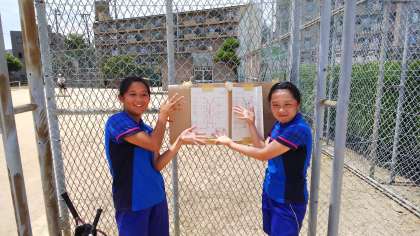 テニス部です。ブロック大会の個人戦(ダブルス)の決勝戦は築港対決になりました。優勝と準優勝おめでとうございます!3年生の引退試合でいい結果が残せてよかったです。最後の試合を開催していただいたことに、ただただ感謝です。