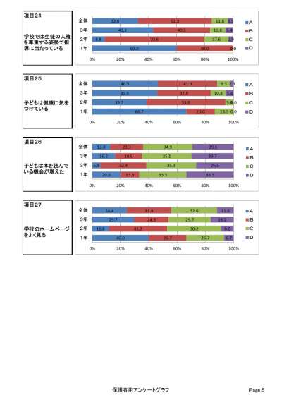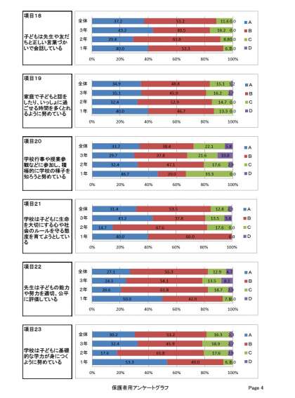 2学期以降、それぞれの項目で今回以上の肯定的な評価の割合が増えるよう頑張ります。