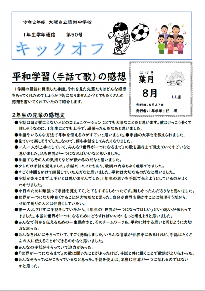 たくさんの感想ありがとうございました。とても真剣に聞いてくれたことが感想からも分かります。