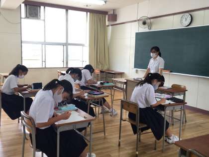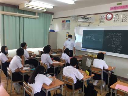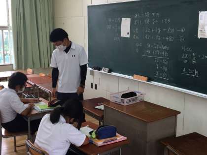 2年生の数学は連立方程式の文章題を学習しています。今日はA組の18人をさらに3分割(応用、標準、基本)に分けて取り組みました。みんなすばらしい授業態度でした。