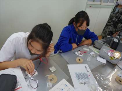 炭素電池を作ってミニ・オルゴールを鳴らしました。
