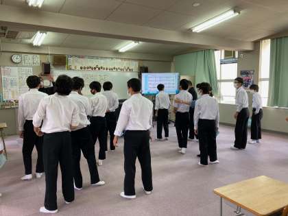 音楽室では、3年生男子も合唱練習を頑張っていました。
