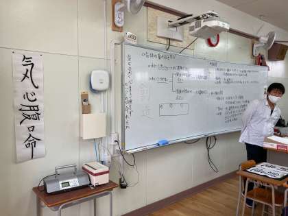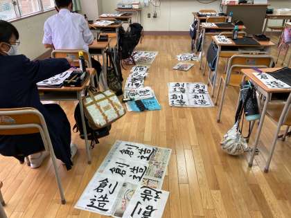 ホワイトボードの左の壁には、書道作品が掲示してありました。
