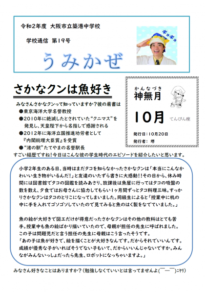 本校の海遊館部の活動が大阪府のHPに掲載されました。